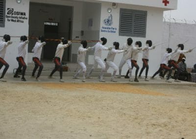 Les activités physiques et sportives sont pratiquées dans les établissements pénitentiaires. Elles constituent un facteur d’équilibre, de cohésion, de responsabilisation et d’acceptation des règles de la société. Ces activités portent sur le football, le basketball, la lutte traditionnelle, les jeux de dame, de scrabble, la pratique de l’escrime etc.